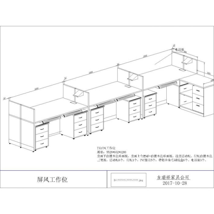 2412584,尺寸:5528*932*1200,材质:铝合金+三聚氰胺板+全磨砂玻璃,颜色:银灰色+白橡木色+磨纱玻璃