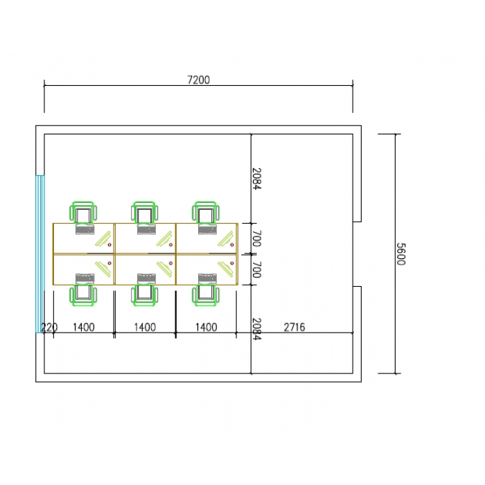 客户需求:屏风不包括机箱架,带键盘架,活动柜,屏风桌面以下为灰白色饰面板,中间为浅天蓝,上面磨砂玻璃,挂桌为灰白色。所有屏风要走线,开孔。注这样的六人布局组合共8间房间
