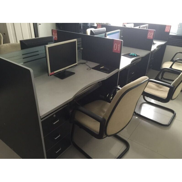 客户需求:备注:屏风侧板三氰板炭黑,桌面白枫:桌上挡板磨砂玻璃,带活动柜键盘