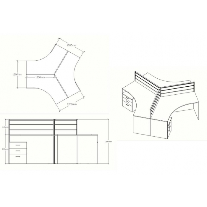 2412713,尺寸:1200*1200*1100(120度),材质:320屏风型材+三氢板,颜色:炭黑+灰白