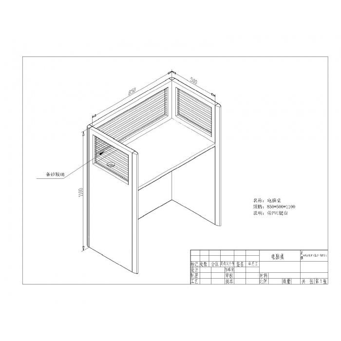 客户需求:屏风型材为320,桌面以下屏风为蓝色单面板,桌面以上为条沙玻璃,桌面为蓝色三氢板
