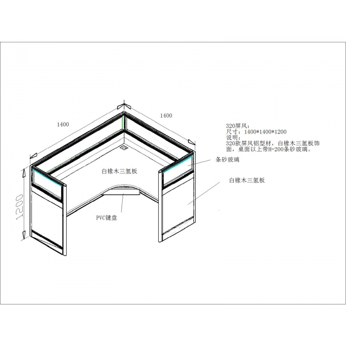 2412801,尺寸:1400*1400*1200,材质:三聚氰胺板+条砂玻璃,颜色:白橡木+白色