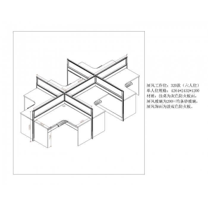 2412869,尺寸:4260*2432*1200,材质:防火板+铝材,颜色:灰白+浅天蓝