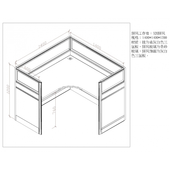 2412915,尺寸:1400*1400,材质:屏风+三氢板,颜色:灰白色