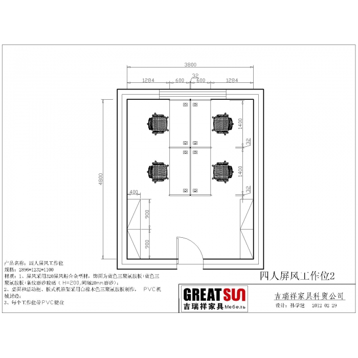 四人屏风工作位