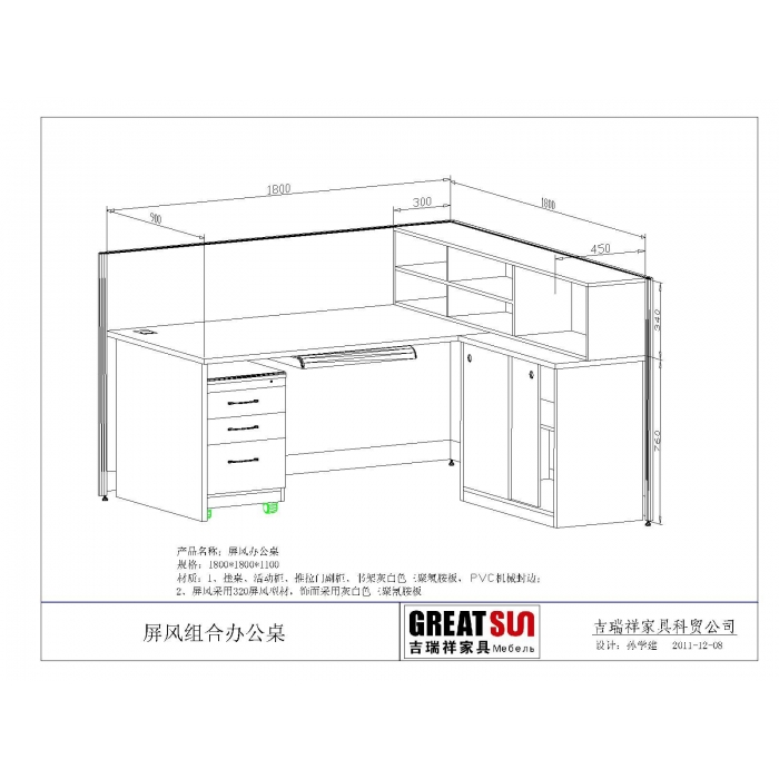 2412940,尺寸:1800*1800*1100,材质:三聚氰胺板,颜色:灰白色