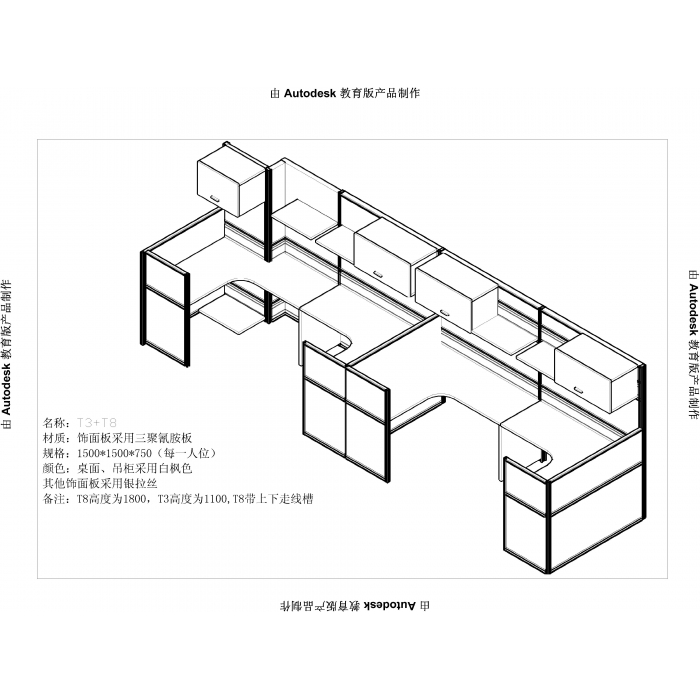 客户需求:t3+t8,每个工作位包含活动柜、机箱架、不带键盘