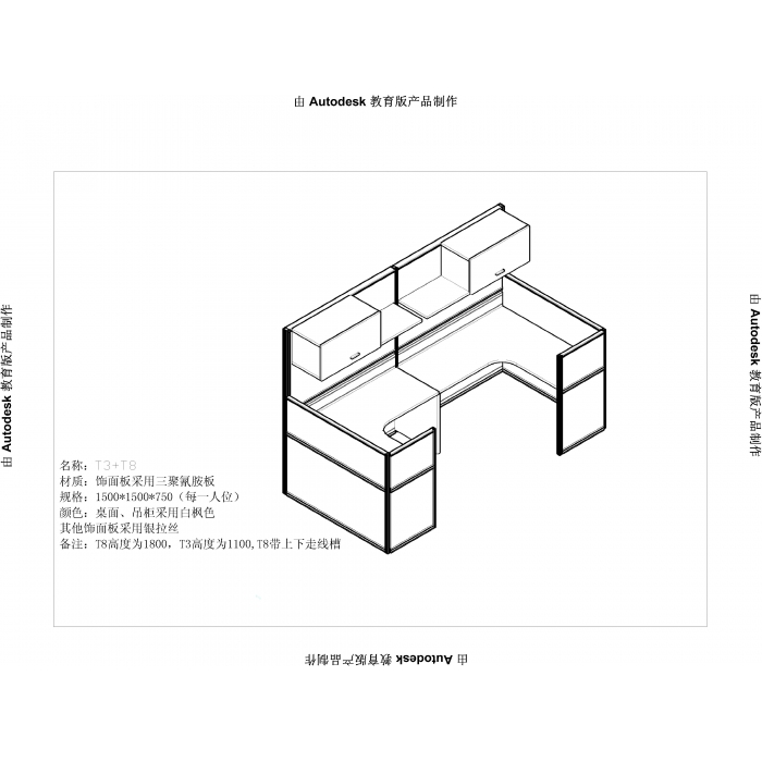 客户需求:t3+t8,每个工作位包含活动柜、机箱架、不带键盘