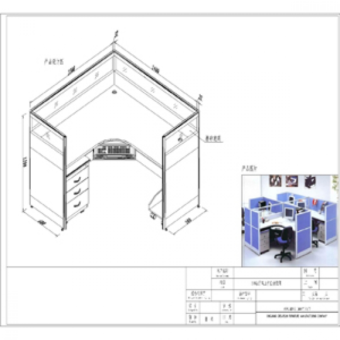 2422971,尺寸:1400*1200*1200,材质:铝型材框架,三聚氰胺板桌面,颜色:型材:氧化铝,屏风面:蓝色三聚氰胺板+白橡木色三聚氰胺板+磨砂玻璃