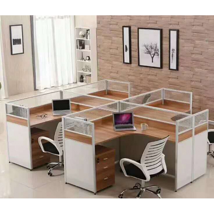 客户需求:屏风框架桌面以下+桌面+活动柜+机箱架+桌面以上中间部门都是白枫+磨砂条玻璃