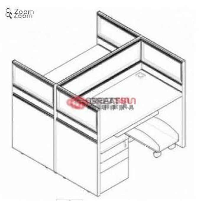 客户需求:材质:G28款式屏风型材+三聚氰胺板+玉砂玻璃+三氰板桌面+机箱架+PVC键盘、带活动柜。六工位相连,左右各三。