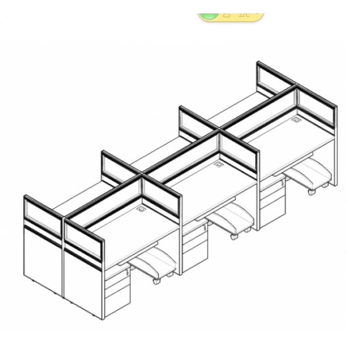 客户需求:1.挂板桌面尺寸1400*700*25 2.共计8个位 3.带活动柜,主机架,键盘 4.中间公用屏风带线槽板
