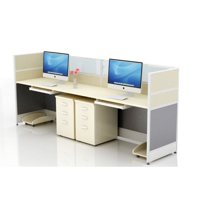 客户需求:1、1200mm屏风要求:上250mm的条砂玻璃,中间为100mm的LB-14白枫色三聚氰胺板,其余为LB-10银拉丝色,下走线,双面错开三开孔; 2、600mm屏风要求:桌面以上分两节,均为LB-14白枫色,桌面以下为LB-10银拉丝色;无线槽; 3、桌面颜色为LB-14白枫色,双开孔(靠近屏风); 4、常规三斗木抽(带锁及一字拉手),固定在桌面; 5、键盘为灰白色K2键盘,双侧边弧形木质机箱架(LB-14白枫色)。