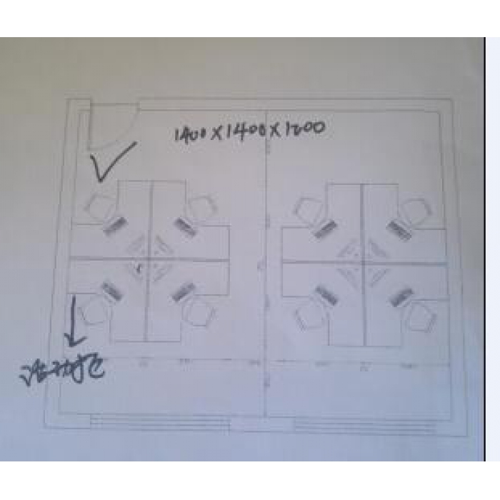 客户需求:屏风款式为6032,桌面颜色和屏风颜色为白色,饰面板颜色为淡绿色(款式 颜色附图),玻璃为2cm磨砂条。带键盘架,机箱架,带活动柜,活动柜和桌面连在一起。 注:屏风下面全部留走线孔。
