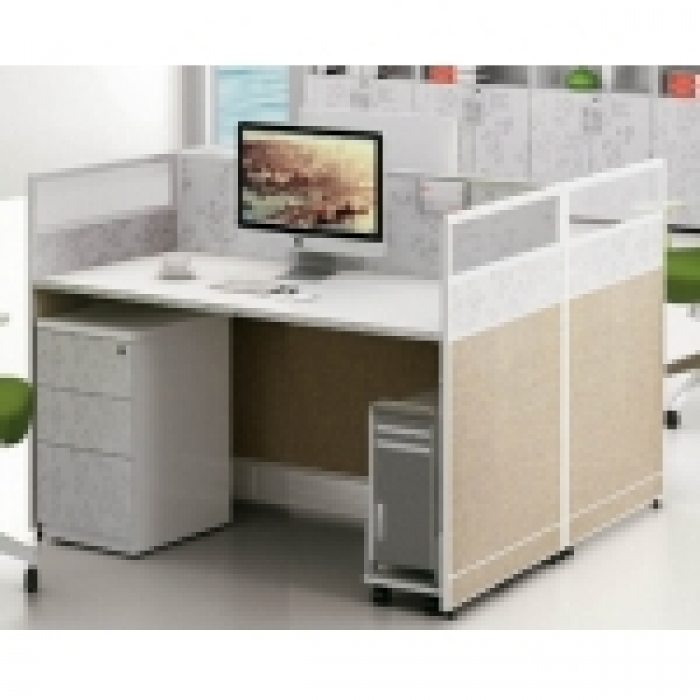 客户需求:桌面以上为全磨砂玻璃+白枫色三氢板,玻璃高度200mm,桌面以下为炭灰色三氢板。屏风款式为32款屏风。带活动柜,不要键盘架和机箱架。桌面尺寸为1400*600*25。
