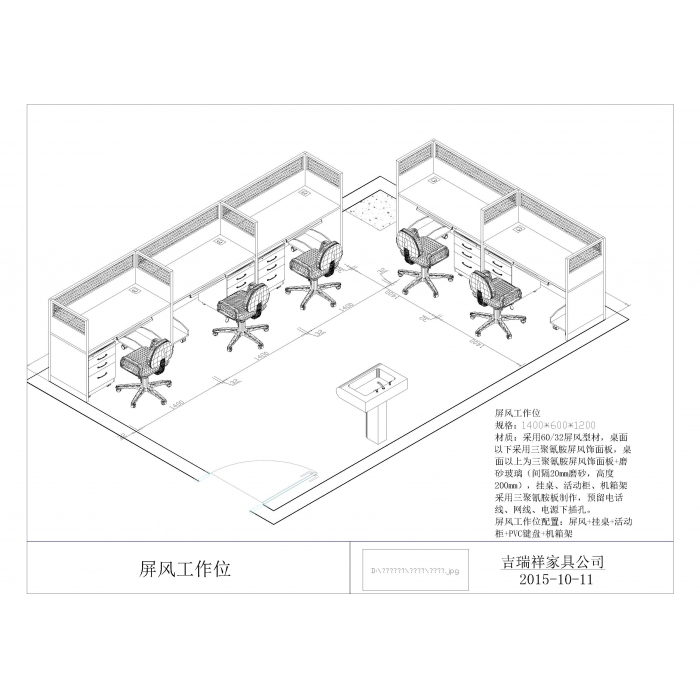 客户需求:挂桌为灰色三聚氰胺板,中间为浅天蓝色,玻璃为2cm磨砂玻璃。活动柜钢制,配件为蓝色