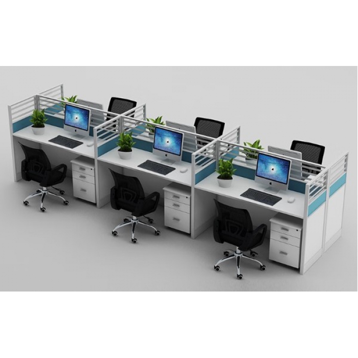 2512007,尺寸:1400*700*760mm,材质:1.屏风框架:采用优质航空全铝合金型材,屏厚40mm,壁厚为1.5mm,高度1200mm;配置钢制机箱架,木制活动柜; 2.屏风分三格,由上至下采用磨砂玻璃+三聚氰胺板饰面+钢板喷涂(凸点); 3.走线功能:桌下预留走线面板,大容量走线系统,走线可实现强弱电分离走线; 4.桌面采用25mm厚优质刨花板制作;饰面采用优质三聚氰胺浸渍纸饰面; 5.封边:采用1.5mm优质PVC封边条,符合QB/T4463-2013《家具用封边条技术要求》; 6.颜色:暖白色铝合金型材+暖白色饰面板+暖白色桌面+浅蓝色桌上饰面,颜色:暖白色铝合金型材+暖白色饰面板+暖白色桌面+浅蓝色桌上饰面板