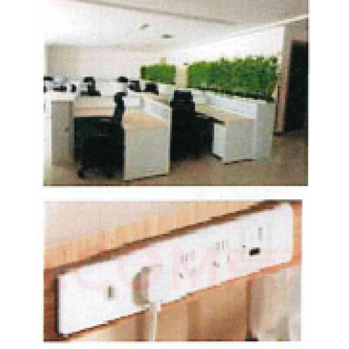 客户需求:含衣柜、书架、笔盒,暖白色)屏风走线在桌面上,多功能3个5孔排插1个网线过电保护。