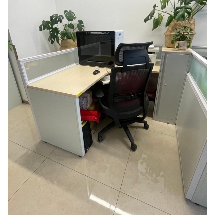 客户需求:一、屏风: 1、屏风框架:采用铝合金型材,屏厚40mm,壁厚为1.5mm,高度1000mm; 2、屏风分两格,桌面以上磨砂玻璃,桌面以下0.7mm优质冷轧钢板冲钢制凸点,面板高度750mm; 3、走线功能:桌下预留走线面板,走线槽内带abs强弱电分线器,走线可实现强弱电分离走线; 4.桌面:采用25mm实木颗粒板 5.饰面:采用三聚氰胺浸渍纸饰面 6.封边:采用1.5mmPVC封边条 二、三抽活动柜: 7、▲基材:采用0.7mm冷轧钢板 8、导轨:采用三节式全展钢珠静音式导轨,每个抽屉可以独立承受35KG的重量; 9、锁具:采用互锁装置,柜底部配备第五轮,柜底部带封板; 三、衣柜:规格300*600*1000mm; 10、基材:采用0.7mm冷轧钢板制作,一字型拉手; 11、衣柜顶板采用16mm三聚氰胺板,