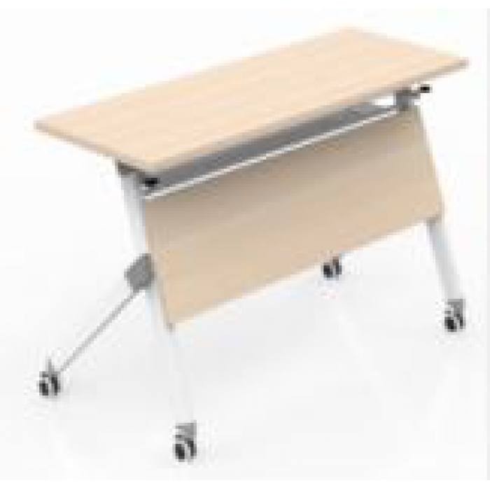客户需求:1.基材:采用优质环保刨花板制作,桌面厚度25mm,前挡板厚度16mm; 2.饰面:采用优质木纹色三聚氰胺板饰面; 3.封边:见光面采用2mm优质PVC封边,经全自动封边工艺处理; 4.桌架:一级冷轧钢管,顶板为1.5mm钢板冲压成型,立柱50*25*T1.5方通,层板为0.8mm钢板冲压折边,表面全处理后高温静电喷涂。手按折叠开关,带刹车PU静音轮。前挡板高度300mm; 5.五金配件:采用优质品牌五金件;
