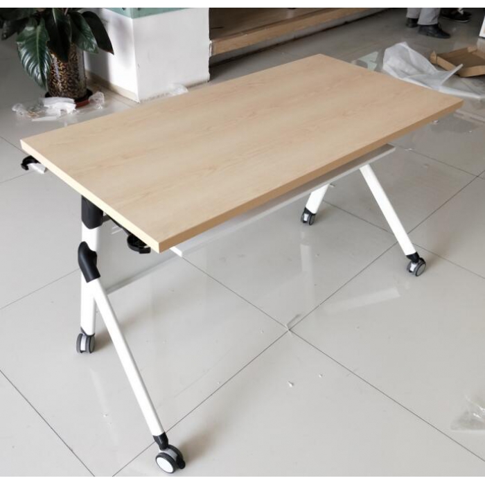 2512750,尺寸:1200*600*760,材质:1.桌板采用25MM厚度防火板, 2MMPVC封边;2.桌脚为50*25MM平椭圆钢管,进口喷涂料,无磷环保静电粉喷涂装;3.附四只刹车轮,桌板可翻转;4.带置物架,可配钢制前挡板。,颜色:白色桌架,白枫色桌面。
