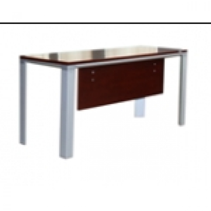 客户需求:桌腿和桌架为钢制银灰色,桌面板和前挡板为胡桃色三聚氰胺板