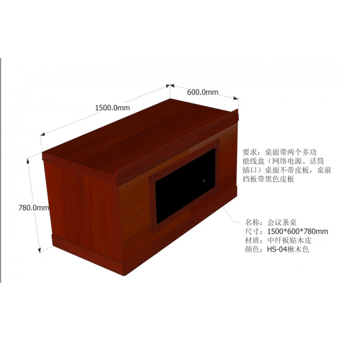 2515941,尺寸:1500*600*780,材质:中纤板贴木皮,颜色:沃盛色板HS-04(楸木)