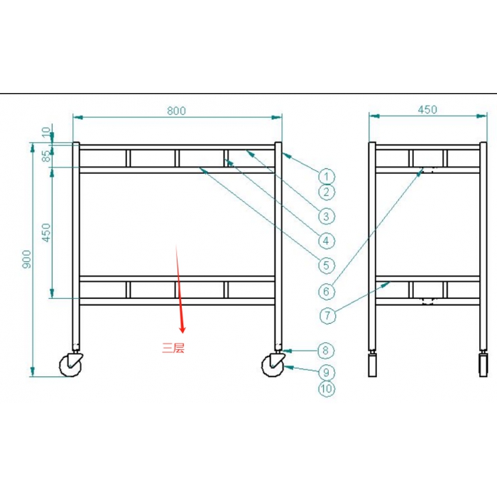 客户需求:在图片的基础上增加脚轮,层数增加到三层。