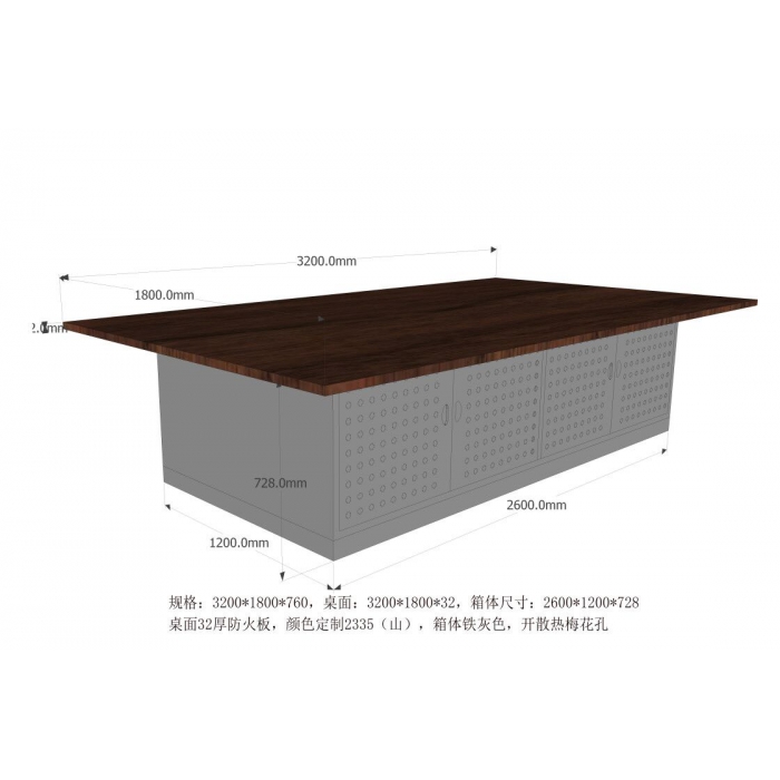 2611626,尺寸:3200*1800*760,材质:钢制+防火板,颜色:防火板2335(山)+钢制银灰