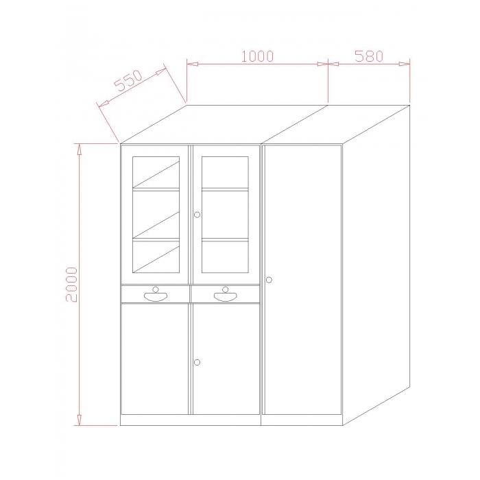 客户需求:此产品为交警支队第一次投标样品的基础上对右侧更衣柜进行重新制作评审,要求:右侧更衣柜规格尺寸不变(580*550*2000),此次制作时需将柜门从横向均分为上下两个柜门,上下柜门外盖横隔板,两个柜均带锁,上柜内配置挂衣杆(挂衣杆用原样品木制挂衣杆),下柜内配置活动隔板。