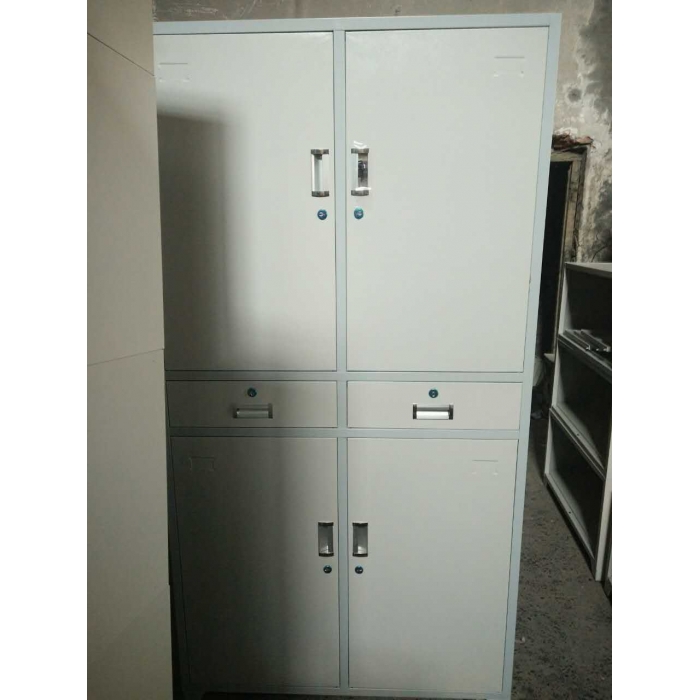 客户需求:上面两个门内各带一个挂衣杆,下面两个门内各带一块活隔板,除后背同系列其余用0.7冷板制做,裙边腿