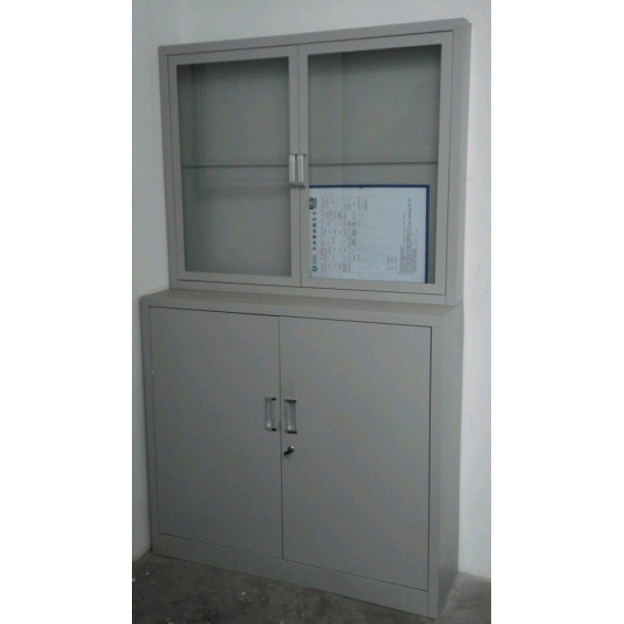 2611876,尺寸:1000*350*1700,材质:柜体采用0.8mm冷轧板,底板采用1.2mm冷轧板。上下柜门带暗锁,柜体带配套角铁底座(1000*350*200),柜体后部带8个装膨胀螺丝的预留孔(柜体可固定墙体),预留孔加厚至1.2mm。柜体分为上下两节,上节规格1000*100*800,柜体顶部内置声控LED灯,背板中部加一横条可摆放资质证书等,柜门为对开玻璃门,下节柜规格1000*350*900,柜体内顶部带6个不锈钢挂衣钩,带活动隔板一块,对开铁质门。,颜色:浅灰