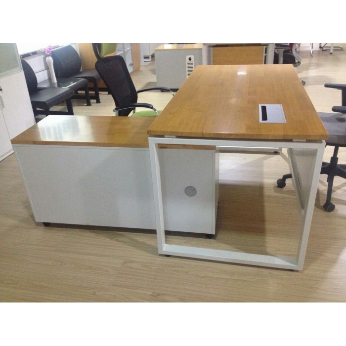 2611947,尺寸:1800*900*760,材质:钢制推柜,主桌桌面及副柜顶板采用25mm橡木指接板,桌架采用国家达标 30*60mm管材,管壁厚度 2.2mm以上,经过剪切、冲压、折弯、焊接、脱脂、磷化、喷粉、装配等处理。2、副柜采用1.0mm冷轧钢板制作,设计台式主机箱及抽屉、柜门。五金配件:“DTC”导轨及铰链。,颜色:展厅样品色