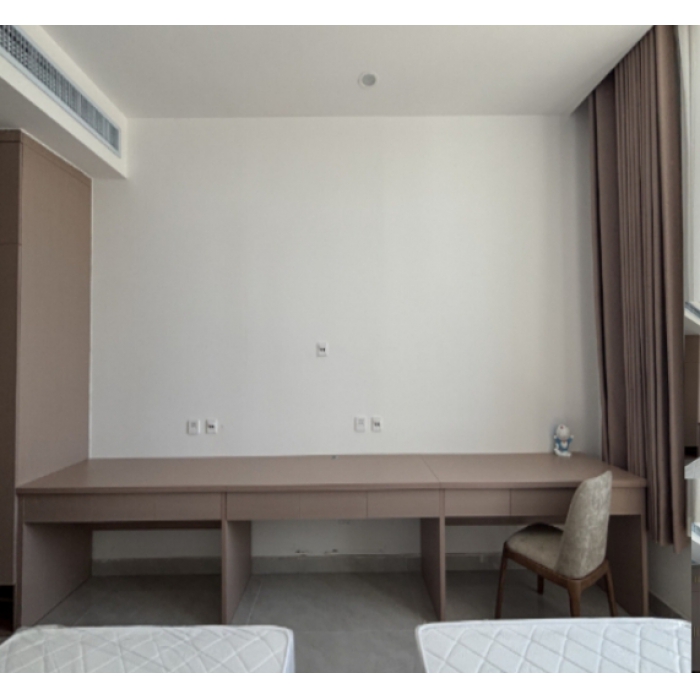 客户需求:E0级18厚板材,中间电视柜不带抽屉,不带腿,左侧带600*600岩板一块,要求岩板与桌面齐平,左侧书桌两个抽屉,右侧书桌两个抽屉,背面带背板,离地110mm