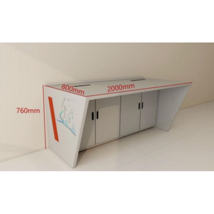 客户需求:1、侧腿装饰条开槽贴亚克力板,一张桌子2个亚克力板。 2、桌面前鸭嘴边,带挡水条,多功能线盒。