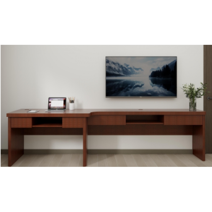 客户需求:写字桌:1200*550*780、电视柜1600*350*780 1.基材为E0级刨花板基材贴面用材:贴面弯曲防火板饰面,2.弯曲防火板饰面、后成型热弯工艺。 3.写字桌的支撑立腿侧板厚度为48MM,桌面厚度为;48mm ,采用弯曲防火板饰面热弯成半圆边钝角处理。