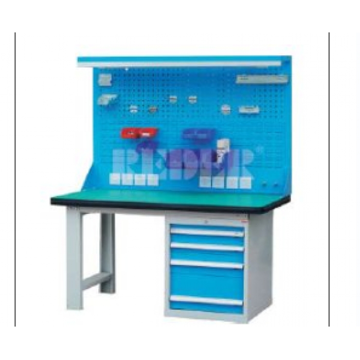 客户需求:1.整体采用2.0mm优质冷轧钢板折弯而成,整体载重1000KG,台面为50mm厚防静电桌面,桌腿规格100*50mm,桌上配H1000灯架1套(普通灯具一套),其中配百叶挂板及方孔挂板各1块,另配2个5孔插座、1个开关及1个空气开关,桌下配1个W564*D572*H700侧柜,配置H100*2+H150*1+H250*1 均为单轨,屉内2*2分隔,单个载重80Kg,可抽出85%左右,表面防静电处理,整体为灰色 2.百叶挂板配套工具架及器材盒各6组