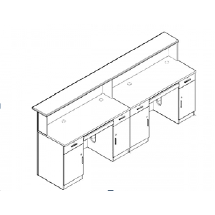 客户需求:桌架白橡木色,面板及挡板白色烤漆,接待板白色人造大理石
