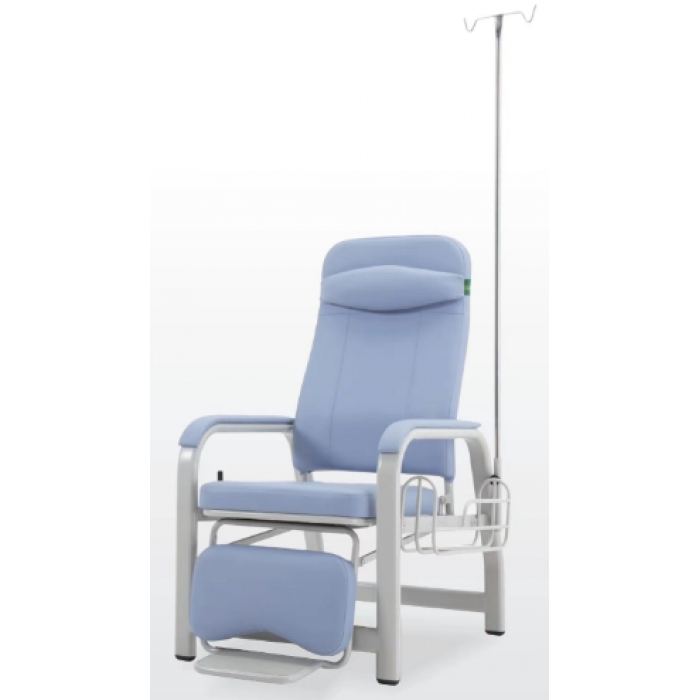 客户需求:1.材质:扶手脚架 1.2MM厚30*60钢制旦,靠背内钢管为φ25*1.2mm钢管,链接横梁采用20*40*1.2MM方钢管组成,连接件材质厚度1.5mm。输液杆为φ18*1.2mm的不锈钢管。2.椅面软垫采用内置钢架结构与木板、海绵及西皮钉制而成。海绵厚度在5CM。输液椅两边扶手西皮包海绵软扶手。座位前面配有搁脚。带不锈钢输液杆,靠背采用档位调节器,靠背可躺、角度可调节。3.尺寸:座高:43CM;背宽:49CM;扶手离地高:61CM;整椅宽度:62CM4.每套配置:输液椅主体+输液杆+头枕。颜色:蓝色asj