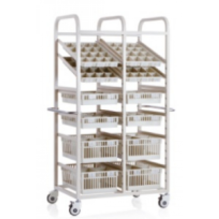 客户需求:1.框架:采用优质30*30*1.2不锈钢管制作,转运车左右两侧配置不锈钢推手,立柱带等距安装孔,可不借助任何工具进行滑槽高度调整; 2.层架横梁采用:采用30*30*1.2不锈钢管制作,滑槽采用铝塑结构,具有锁止结构,有效防止运输中物品跌落风险。单层承重达到40Kg; 3.整车配置六层双列置物篮,置物篮采用ABS材质注塑成型,其中四只小号周转筐、四只中号周转筐,四只大号周转筐,塑料周转筐承重≥20Kg,周转筐内配置ABS隔断,自由组合,配置标识牌,可对每一分隔进行标识,实现物品放置分类明确、标识明确; 4.脚轮采用4寸带刹车静音脚轮,高级人造橡胶静音脚轮,外罩包ABS防缠绕,坚固耐用,外表美观;其中2只脚轮配置刹车,可在任意状态下使用刹车功能。