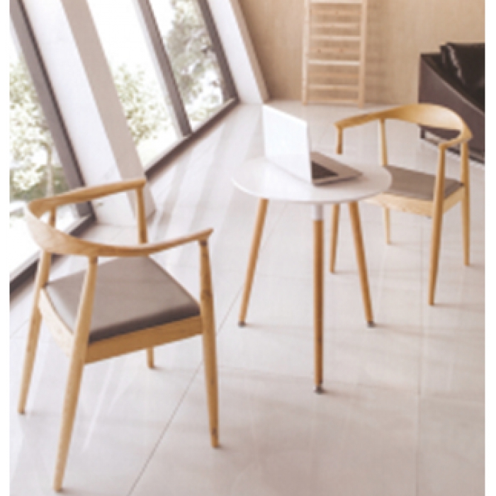 2699699,尺寸:圆桌直径700,材质:白蜡木桌架、椅架,布绒椅面。,颜色:原木色