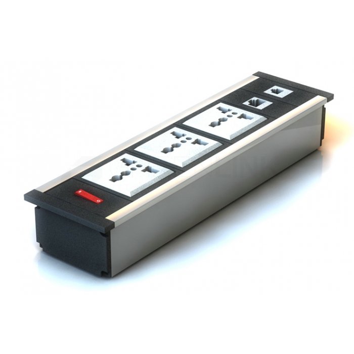 客户需求:三组强电模块,一组网络模块,一组语音模块与电源开关模块。此为国林提供产品,可镶嵌至走线槽内。