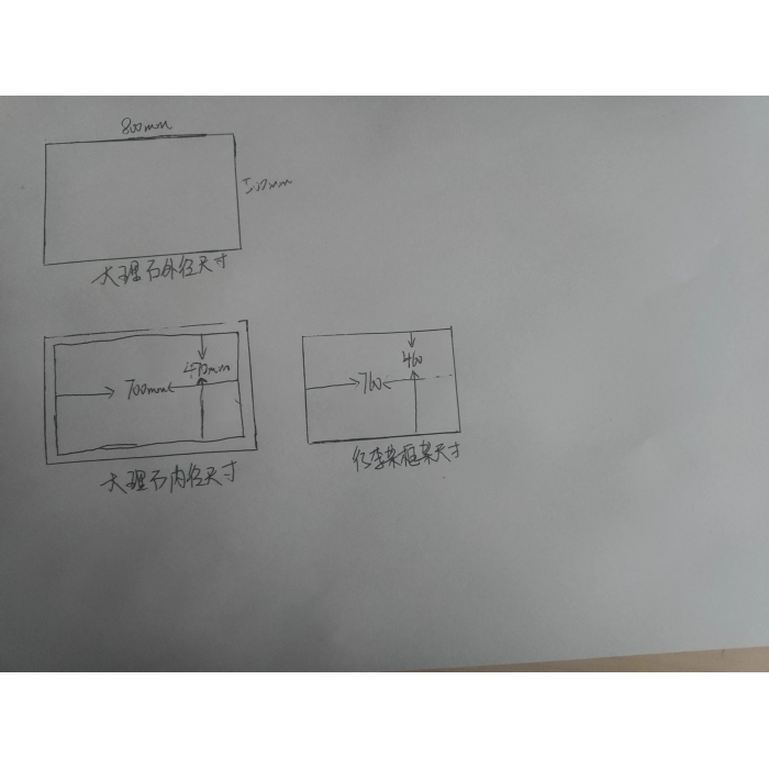 客户需求:大理石台面外径800*500mm,大理石内径尺寸770*470mm,行李架框架尺寸为460*760mm。