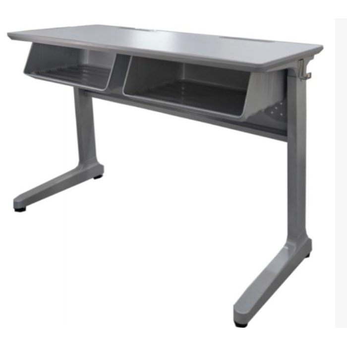1.桌面:采用优质双饰面密度板长 1220mm,宽 480mm,厚度 25mm,PP 塑料注塑封边一次成型,四周截面注塑封边处理,桌面四周反鸭嘴设计,桌面正前方设两根笔槽,内空宽为 14mm,长为 255mm 笔槽,笔槽底部设置 38*6mm四个排水孔,方便清理,防止书写文具掉落,桌面靠胸前部位有四条波浪纹包边 20mm 宽度。
