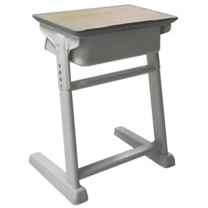 客户需求:桌面(1)规格:600×400×25mm,(2)材质及结构:桌面基材采用厚度25mm优质E0级环保板材;具备防火功能;甲醛含量≤0.05mg/m³,桌面光滑、平整、耐磨。桌面采用注塑封边技术;桌面与桌架连接部分要连接牢固防止因频繁搬动导致脱落,桌面带有挡笔槽,可有效的满足使用需求,可收纳日常用笔; 2.桌脚:桌脚采用长为460mm、壁厚为2.0mm的优质钢材,表面光滑平整;每只桌脚配有两个调节脚垫,可调节桌面水平,保证桌子的稳定性。3.桌腿:桌腿规格:80×30×1.5mm优质椭圆钢管,表面通过抛丸喷砂处理,产品外露部件均无尖锐棱角;桌腿和桌脚满焊焊接,牢固可靠。4.桌面支架:桌面支架采用厚度为1.5mm的优质钢材,造型美观、牢固,位于桌腿两侧;桌架调节高度的范围约为660-780mm,有5档调节,调节高度为660mm、690mm、720mm、750mm、780mm,调节固定模式要稳定、牢靠。5.桌架横梁:桌架横梁规格:两根60*30*1.5mm优质钢管链接,表面通过抛丸喷砂处理,上部横梁要对桌斗有支撑作用,要求美观、牢固。6.桌斗(1)规格:470×330×140mm;(2)材质及结构:采用厚度为于0.8mm的优质钢材;连接紧密,无缝,内部空间大,满足使用需求,桌面与桌斗连接部分要连接牢固防止脱落。桌斗底部有4个液体渗漏孔。7.书包挂钩:课桌两面需配置2个金属挂钩,挂钩应表面光滑、平整、牢固,要求合理安装在桌斗两侧,不超出桌面。避免刮破学生衣服;使用舒适,耐用