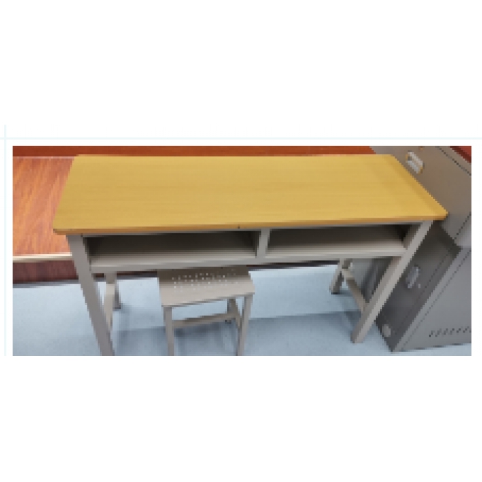 3111561,尺寸:1200*400*760,材质:钢制+三聚氰胺板,颜色:浅灰+榉木色桌面