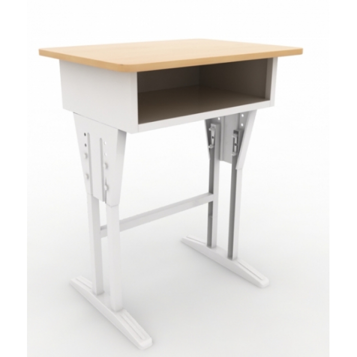 3111654,尺寸:600*450*(670-790),材质:1、桌腿连接板采用1.0mm冷轧钢板一次折弯成型,高度可调节,桌脚采用1.5mm冷轧钢板一次冲压成型,桌立腿、桌横梁:采用矩形国标管材25*25*1.2mm。桌斗采用0.7mm优质冷轧钢板折弯成型,桌斗高度170mm; 2、桌面:基材为18mm厚E1级环保基材密度板无缝注塑一次成型,,颜色:浅灰色榉木色