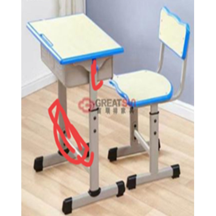 客户需求:客户需求:1.▲桌面:规格为600×400mm×18mm厚,桌面基材为高密度纤维板(注塑封边)。 2.桌面固定:桌面安装与钢架用自攻螺丝处理。 3.桌斗:规格为450mm×300mm×150mm,采用冷轧板冲压一次成型。 4.桌斗桌架加强撑:桌斗下的托撑用25×25×1.2mm 方管焊接而成。 5.桌架管: 30mm×60mm×1.2mm优质椭圆钢管,课桌桌腿跌落:冲击高度300mm,10次; 6.桌脚: 30mm×60mm×1.2mm优质椭圆钢管。 7.桌腿连接撑:采用25×25×1.2mm 的椭圆管。 8.椅架管: 30mm×60mm×1.2mm优质椭圆钢管。 9.椅脚: 30mm×60mm×1.2mm优质椭圆钢管。 10.椅腿连接撑:采用40×20×1.2mm 的椭圆管。 11.脚垫采用高压聚乙烯注塑成形。 12.颜色:图片色。13.在桌架下加一个书包篮如第二张图款式。14.桌腿两侧加钢制挂钩。