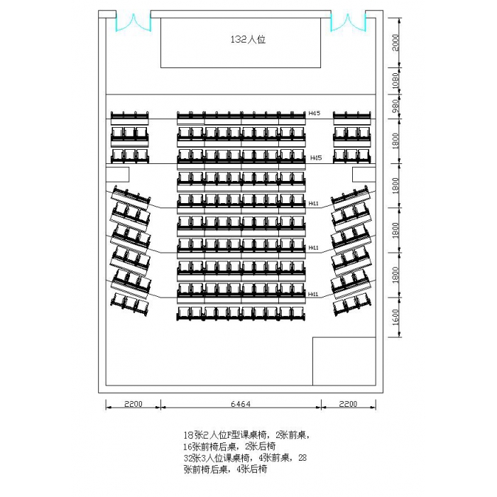 一、两人位前桌:1050*350*760=2套, 1050*350*910=2套