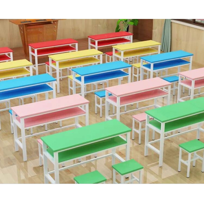 客户需求:每套课桌带两个方凳,按红色、蓝色评审